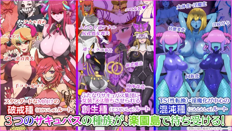 3つのサキュバス種族のルートから好きなルートに挑み、