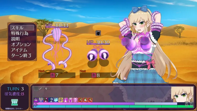 ☆若き美男子の主人公「アーサー」を操作し、様々な種族のサキュバスたちが蠢くダンジョン「楽園島(ラクエントウ)」を冒険するゲームです。