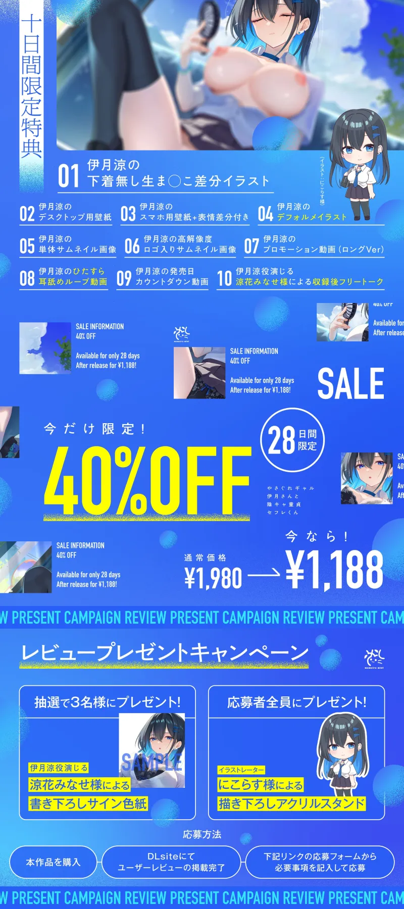 発売開始(2025/10/2)から10日間限定のため、2025/10/11(土)23:59までのDLsitePlayへの限定配信となります。
