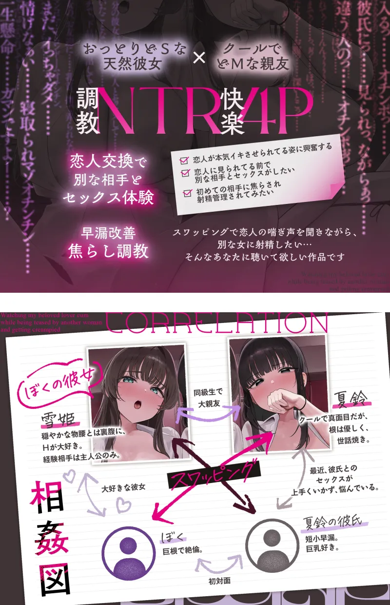 スワッピングで恋人の喘ぎ声を聞きながら、別な女に射精したい…そんなあなたに聴いて欲しい作品です