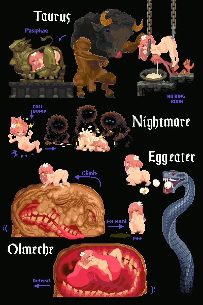 敵も仕掛けも全てがHな、体を使って踏破する迷宮探索アクションゲーム。