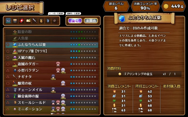 ・一部のHイベントは特定のアイテム・薬を錬金術で作成することで発生したりもします。