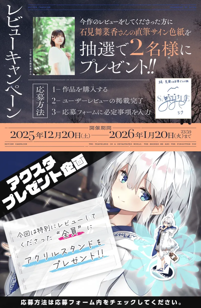 作品のレビューをしてくださった方に石見舞菜香さんの直筆サイン色紙を抽選で2名様にプレゼント!
