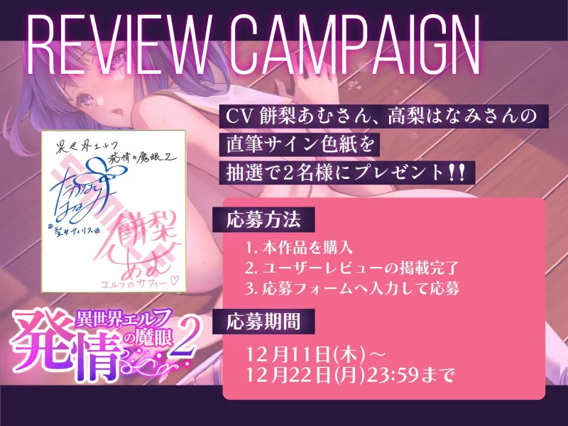 累計36万DL越えの超ヒット同人誌シリーズ「異世界エルフ発情の魔眼」を音声作品として再構成!!
