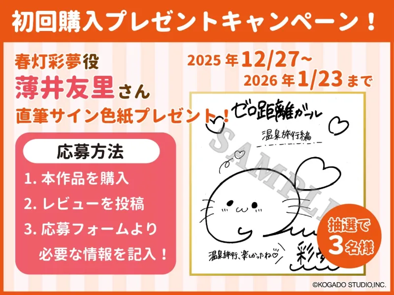 さらに対象期間中に購入&レビュー掲載で、春灯彩夢役・薄井友里さんの直筆サイン色紙が抽選で3名様にあたるプレゼントキャンペーンも実施いたします。