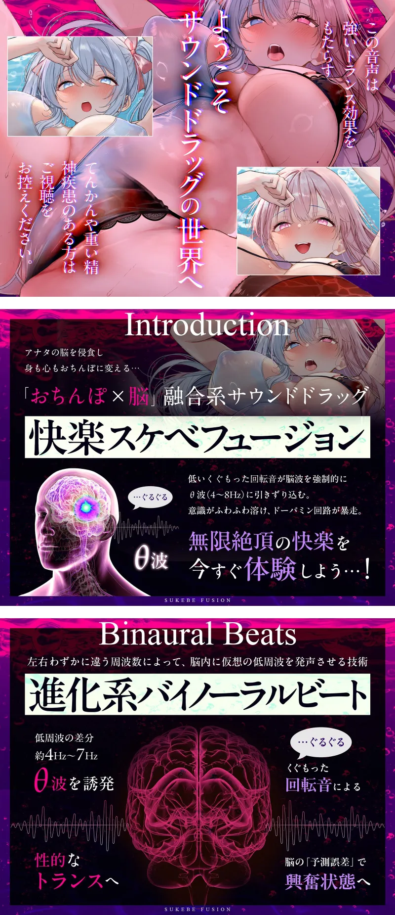 この作品は、進化系バイノーラルビートが脳波を強制的に変性意識状態へ引きずり込み、
